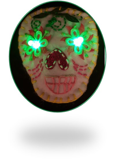 One response to “SUGAR SKULL FELTIES WITH LED EYES”