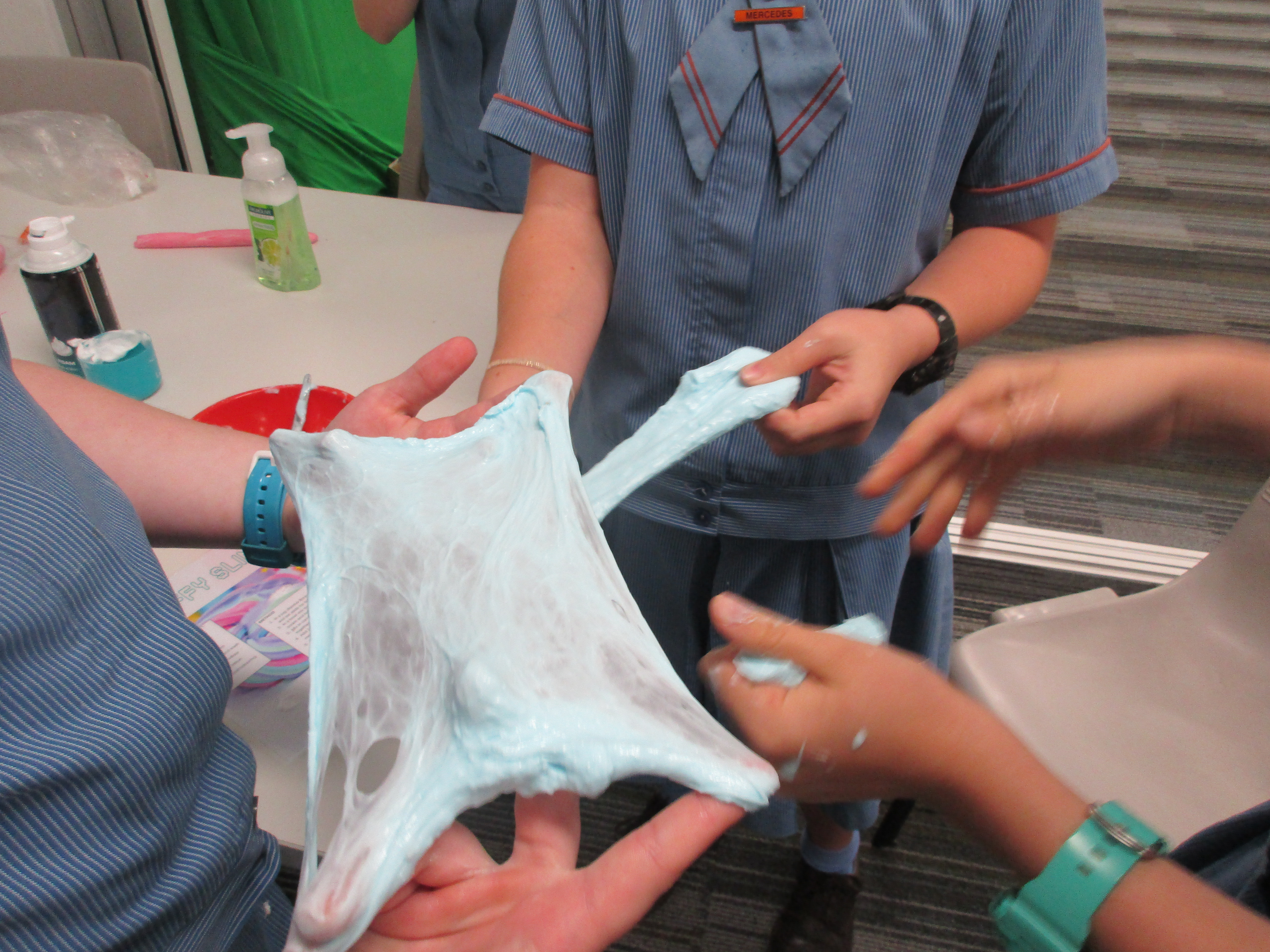 The second half of the week was fluffy slime, the students had a choice of blue or pink and variations of, fragrant liquid soap was one of the ingredients of this slime, so everyone was smelling beautiful.