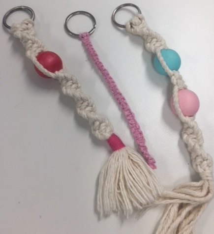 Creating their own key ring out of natural cotton cord or jute and adding a couple of beads to their design. Some students painted their own beads, others used the coloured beads that we supplied.