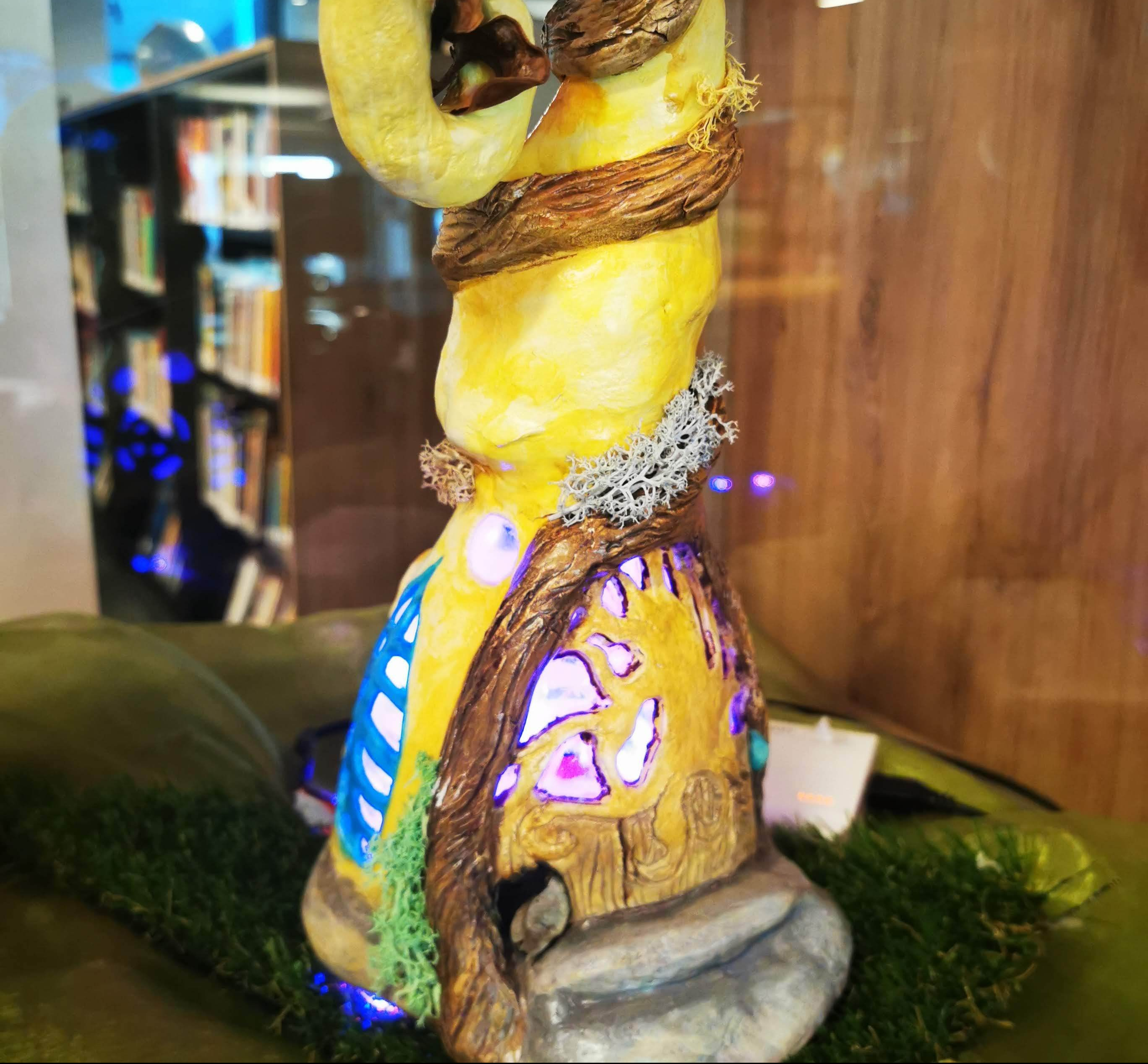This is a big project for the students, and involves the students first mapping out their vision of the fairy house then completing the structure or “bones” of the house with wire, silver foil and hot glue. Then they start to add air dry clay to the structure, making sure to cut out enough windows and doors to show the fairy lighting inside.