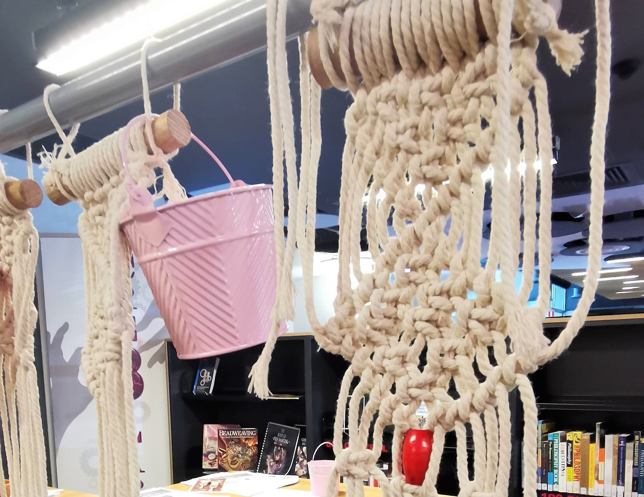 The younger students in the Makerspace are also interested in Macramé and have progressed from keyrings to a simple pot hanger this term.